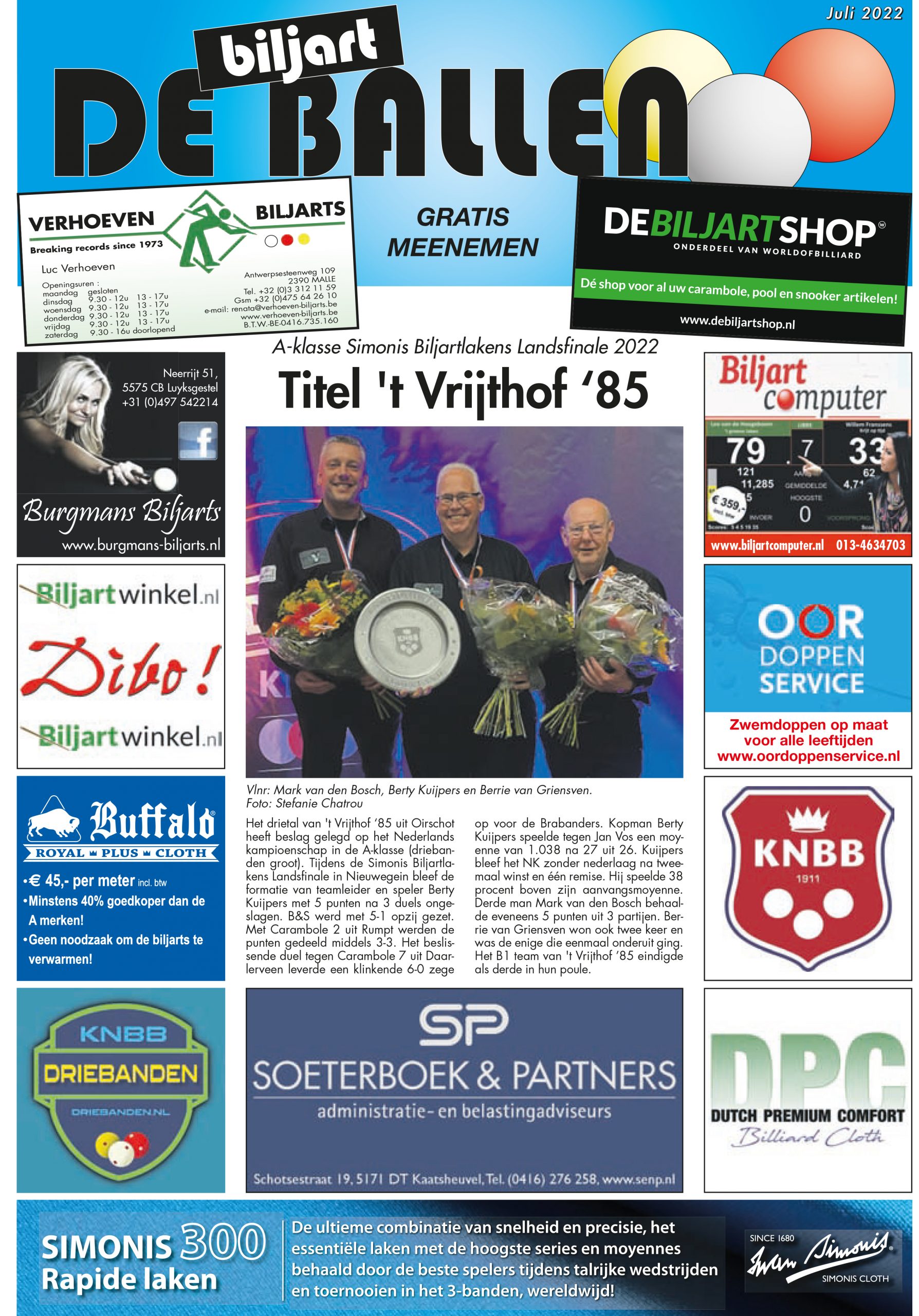 Digitale weergave van De Biljart Ballen maand Juli 2022