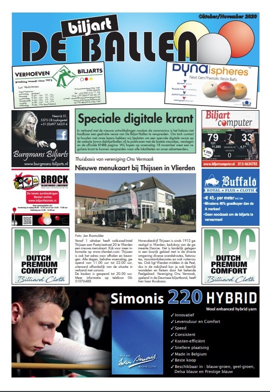 Digitale weergave van De Biljart Ballen maand Oktober/November 2020